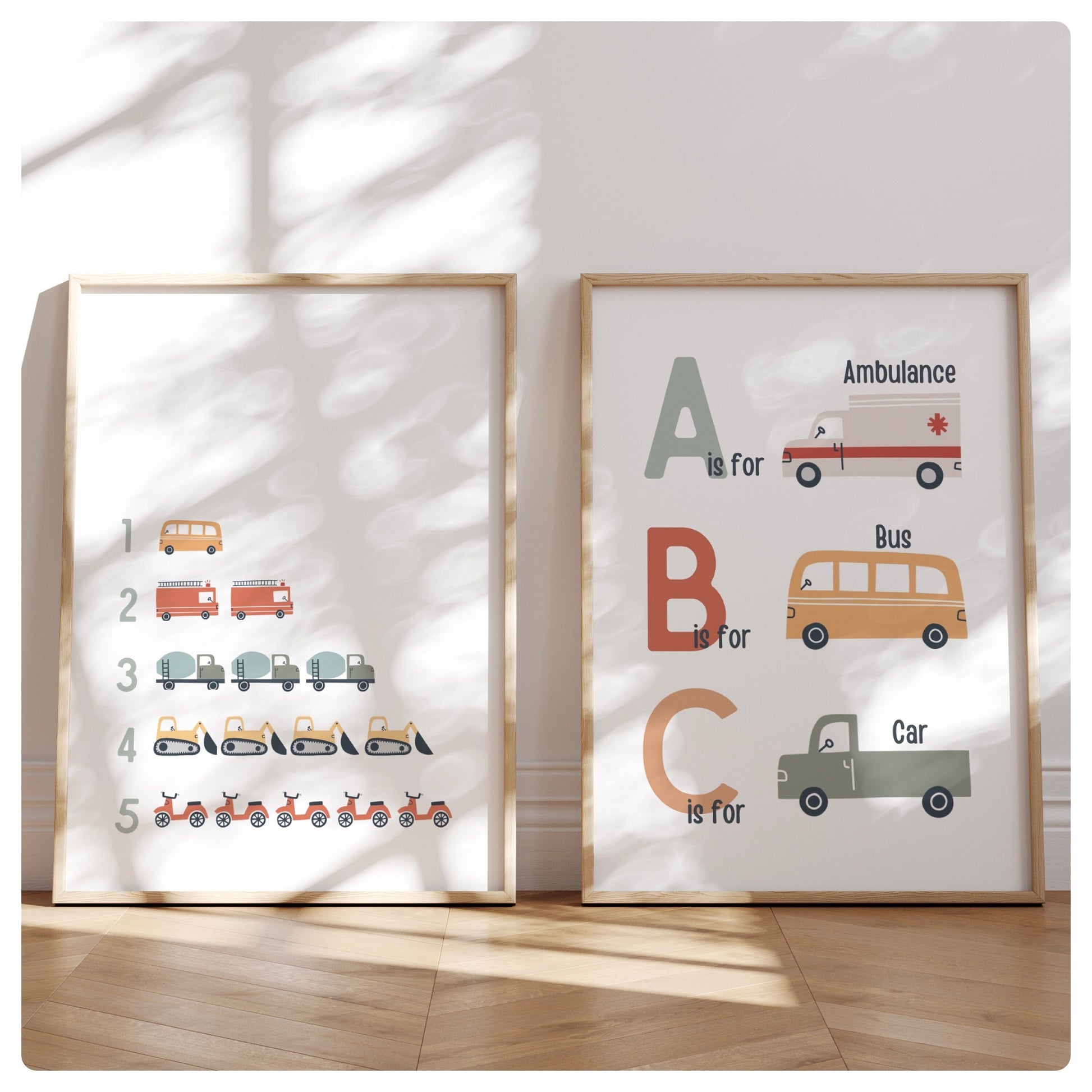 Number and ABC vehicle set of 2 prints